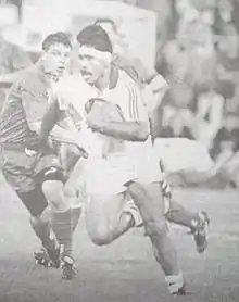 Taofifénua featured in the defeat to Castres Olympique, in a final said to be one of the worst-ever scandals in French rugby. Despite their overpowering pack "the Mammoths of Grenoble"[1] lost 14–11.[2] A try by Grenoble's Olivier Brouzet was denied,[3] then the referee Daniel Salles awarded the decisive try to Gary Whetton, although Grenoble defender Franck Hueber was first to touch down the ball. This ruling gave the title to Castres.[4] Referee Salles admitted 13 years later that he was in error.[5][6][7] FC Grenoble coach Jacques Fouroux accused the Federation of a conspiracy, claiming that he had been suspicious of the referee even before the match.[8][9]