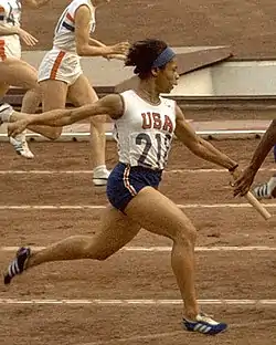 Willye Brown White (December 31, 1939 – February 6, 2007)[2] was an American track and field athlete who took part in five Olympics from 1956 to 1972.[3] She was America's best female long jumper of the time and also competed in the 100 meters sprint. White was a Tennessee State University Tigerbelle under Coach Ed Temple. An African-American,[4] White was the first U.S. athlete to compete in track in five Olympics.