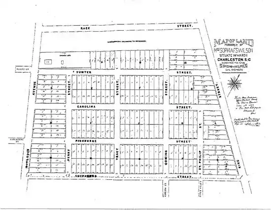 Wilson's Farm is a neighborhood in Charleston, South Carolina.[1] By 1746, a 55-acre tract of the upper Charleston peninsula had been subdivided from a larger parcel and sold to John Drayton who used the land as a farm known as "Pickpocket." In 1757, 52-acres were transferred to Andrew Faesch and Peter Guinard. Pickpocket Plantation was managed by Sophia Faesch, and the house on the plantation was known as “Sophy Hall.”[1]
