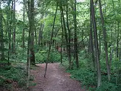 Wilson Mountain Reservation is a state-owned, public recreation area and protected woodland park in Dedham, Massachusetts, managed by the Massachusetts Department of Conservation and Recreation.[2] It features hiking trails, open space and a summit view of the Boston skyline, and is an important wildlife preserve.[3] At 215 acres (87 ha), it is the largest remaining open space in Dedham. The reservation is part of the Metropolitan Park System of Greater Boston.