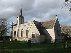 The church is a Grade II* listed building dedicated to Saint Faith. Built in 1715, it was restored and altered by James Fowler of Louth in 1869. In the sanctuary is a late-13th-century effigy of a knight in chain mail;[7] perhaps a Wake family member. Hereward the Wake was an Anglo-Saxon who led resistance to the Norman Conquest, and was born in or near Bourne.[8]
