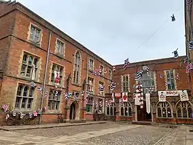 Flint Court on Winkies Day: the classroom buildings are decked out with Commoners and OTH zephyrs.