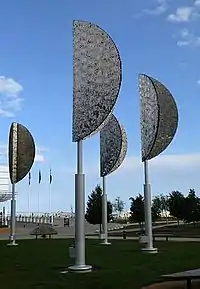 Wind Leaves is a public artwork by American artist Ned Kahn located on the downtown lakefront Pier Wisconsin in Milwaukee, Wisconsin, United States. It was created in 2006 and consists of a series of seven 30 ft (9 m) tall structures made from aluminum and stainless steel.[1] The structures, which move with the wind, have leaf forms at the top covered by thousands of stainless steel disks.
