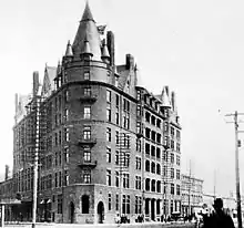 The city's first serious art gallery was first opened in the former Manitoba Hotel (built c. 1892 by the Northern Pacific Railway), located at Main and Water Ave.[4] An area of the hotel was set aside for an art studio. The art gallery was organized by Cora Moore, who upon return from a trip to Toronto, organized a Winnipeg branch of the Women's Art Association of Canada and subsequently an artists group for men. The first art exhibit took place in February 1895. The art gallery featured art from artists from Manitoba, as well as Toronto, Montreal, New York, London, and Paris.[5] The art gallery was shut down after the Manitoba Hotel burned down in 1899.