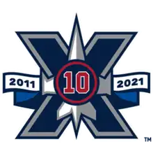 Even though the current Jets are not historically connected with the original franchise now known as the Arizona Coyotes, the team continued to pay tribute to its original incarnation on a few occasions. From 2016 to 2019, the Jets wore throwback white uniforms based on the 1973–78 design worn by the original Jets. The uniforms made its debut in the 2016 Heritage Classic and have been used during Jets Hall of Fame induction nights since.[64] A blue version of the throwback uniforms was later unveiled, this time for the 2019 Heritage Classic.[65] For the 2020–21 season, the Jets wore "Reverse Retro" alternate uniforms, recreating the original Jets' 1979–90 uniforms but recoloured to match the current Jets' scheme.[66] In addition, the current Jets' 10th-anniversary logo in 2021 also served as a memorial logo to Dale Hawerchuk, whose no. 10 (in the original Jets' number and colour style) was added in lieu of the team's current logo following his death on August 18, 2020.[67] Starting with the 2021–22 season, the Jets' blue "Heritage" uniforms were promoted to alternate status, replacing the previous aviator blue alternates.[68] In the 2022–23 season, the Jets wore "Reverse Retro" uniforms based on the white uniforms worn by the original Jets from 1990 to 1996, again recoloured to the current Jets' scheme.[69]