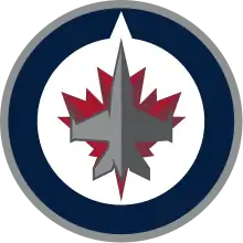 While blue and silver are the main colour palette, the insignias are a dramatic departure from the previous Jets' logos and pay homage to the Royal Canadian Air Force (RCAF), particularly Winnipeg's 17 Wing; the primary logo is patterned after the roundels used by the RCAF and includes a silhouette of a McDonnell Douglas CF-18 Hornet.[58] (Red is a secondary part of the colour scheme due to a maple leaf, the incorporation of which came with the permission of the Toronto Maple Leafs.)[58] Game uniforms for the new Jets were unveiled in September at 17 Wing;[59][60][61] the team did not introduce a third jersey for its inaugural season due to a limited timetable.[57][58]