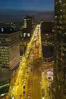 Looking west down Portage Avenue at night