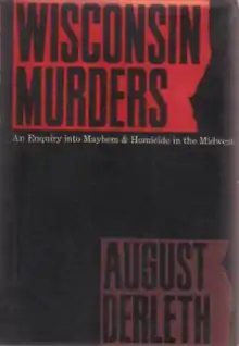 Wisconsin Murders is a collection of true crime accounts written by author August Derleth. It was released in 1968 by Mycroft & Moran in an edition of 1,958 copies. The stories detail sixteen cases of sudden death in Wisconsin for 1842 to 1926. Three of the accounts had appeared previously in American Weekly and Saint Mystery Magazine.