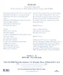 "With Me" is a song written by Brett James and Troy Verges, and recorded by American country music group Lonestar. It was released in August 2001 as the second single from their album I'm Already There. It peaked at number 10 on the U.S. Billboard Hot Country Singles & Tracks chart.[1]