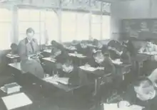 The early physics students had more contact with Kroll because they had studied Japanese, but the later students had less contact.[2] In the early postwar period, many professors who came to Taiwan with the Nationalist government used the Shanghai dialect or Zhejiang dialect to teach their classes. Taiwanese students could not understand them, so they asked Kroll for advice in Japanese during their spare time. Sometimes teachers and students would drink together. When a student drifted out of the window during Kroll's lecture, Kroll threw chalk at him and angrily exclaimed, "Is the blackboard outside the window?"[3] If a student dozed off during class or was late and left early, Kroll would throw chalk at them, and if a student talked privately during class, he would pound his face on the table and reprimand them.[13][4] Clare always graded students in whole multiples of ten (e.g., 60, 80) and never gave grades such as 56 or 85, similar to the future grading system. This is because he believed that the difference of a few points was not meaningful, so the scores should not be divided.[8]