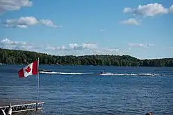 There are many lakes within Wollaston township including: King Lake, Bear Lake, and Snow Lake. However, the largest lake in the township lies just adjacent to Coe Hill: Wollaston Lake[9] This lake should not be confused with Wollaston Lake in Saskatchewan. Although Wollaston Lake is the largest lake in the township, it is still relatively small, approximately 6.5 kilometres long and covering just 360 hectares. It is a deep coldwater lake deemed "at capacity" with a maximum depth of 31.1 meters (102.03 feet) and a mean depth of 9.4 meters (30.84 feet).[10] The five principal fish species in the lake are lake trout, largemouth and smallmouth bass, northern pike, and walleye.[11] Other nuisance species include rock bass and northern sunfish.