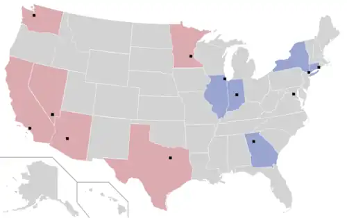 Six current WNBA teams and one future team are associated with an NBA team from the same market and are known as sister teams. These teams include the Brooklyn Nets and New York Liberty, the Indiana Pacers and Fever, the Los Angeles Lakers and Sparks, the Minnesota Timberwolves and Lynx, the Phoenix Suns and Mercury, the Washington Wizards and Mystics, and the Golden State Warriors and the San Francisco expansion team set to start play in 2025. Of these teams, only the Sparks have completely separate ownership. The Liberty had been associated with the New York Knicks, having been owned by the Knicks' parent company, The Madison Square Garden Company,[45][46] but the team was sold in January 2019 to a group led by Joseph Tsai, then a minority owner of the Brooklyn Nets[47] and now sole owner of that team.[48] The Liberty, which played at Madison Square Garden from 1997 until 2017, were then relocated from the Westchester County Center in suburban White Plains to the Nets’ home arena, Barclays Center in downtown Brooklyn. Through the 2017 season, the San Antonio Spurs and Stars were also paired, but that relationship ended in October 2017 when the Stars were bought by MGM Resorts International and moved to Las Vegas.[49]
