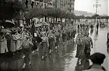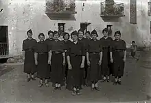 Starting in October 1937, Sección Femenina de la Falange Española started actively recruiting single women between the ages of 17 and 35 to do social work as a volunteer for six months.[31][32][19] In some cases, service was mandatory. It represented the first mass mobilization of women by Nationalist forces.[32][19]