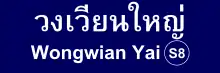 Wongwian Yai station (Thai: สถานีวงเวียนใหญ่, pronounced [sā.tʰǎː.nīː wōŋ.wīa̯n jàj]) is a BTS skytrain station, on the Silom line in Khlong San District, Bangkok, Thailand. The station is on Krung Thon Buri Road to the west of Taksin intersection. It is located in a different location to Wongwian Yai railway station operated by the State Railway of Thailand.