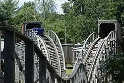 Wooden Warrior is a wooden roller coaster located at Quassy Amusement Park in Middlebury, Connecticut, United States. The coaster was designed and built by American wooden coaster designer The Gravity Group. Wooden Warrior features a 45-foot (14 m) drop, with a maximum speed of 35 miles per hour (56 km/h) and a total track length of 1,239 feet (378 m).[1] Despite the coaster's small size, it has been well received by enthusiasts for its air time and thrilling experience.[2][3] The coaster features Gravitykraft's Timberliner trains, and was the first wooden coaster in the United States to use such trains.[3]
