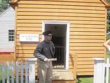 Woodson was born March 8, 1824, and died July 1, 1864. There is no confirmed evidence that it was necessarily always occupied by Woodson.[4] He was an attorney that practiced law in the Old Appomattox Court House.[5] Woodson rented the building from Samuel D. McDearmon starting on January 1, 1854. He used the building to store his law books, legal documents, and a change of clothing. In his book A Place Called Appomattox, historian William Marvel notes that "it was not until the first court day of 1854 that Woodson bought a hasp, hinge, and padlock for the building and a lock for the chest in which he could store a change of clothes."[7]