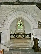 In the 18th century the east wall of the chancel was rebuilt in brick with a single-light east window, and the west window of the nave was altered. In 1914 the east window was replaced with a new one of two lights.[2] In 1783 the church had one bell. In the 19th or early in the 20th century the bellcote was replaced with the present one on the west gable of the nave.[2] The church is a Grade II* listed building.[11] Woolstone was made an ecclesiastical parish separate from Uffington in 1846. All Saints' is now once again part of the Uffington Benefice, along with the parishes of Baulking and Shellingford.[12]