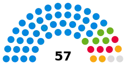 The Council is currently composed of 57 councillors, the majority representing a single-member division. Elections are held every four years; the last in 2021.