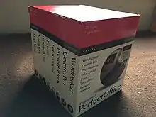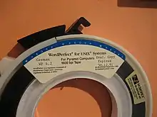 WordPerfect for DOS box, next to storage boxes for 3½-inch diskettes