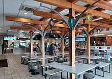 The World's Largest Entertainment McDonald's has three stories and offers a 22-foot-tall PlayPlace, over 100 arcade games, and a waving 30-foot-tall image of Ronald McDonald at the entrance. Initially opened in 1976, the restaurant was closed for renovation in 2015 and reopened as a rebuilt building in 2016.[4][5][6] The restaurant is open 24 hours and features a "Create Your Own" menu.[7]