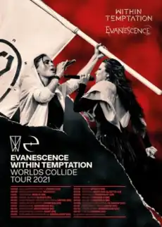 Worlds Collide (also referred to as Worlds Collide Tour) was a concert tour co-headlined by American rock band Evanescence and Dutch symphonic metal band Within Temptation.[1][2][3][4] The tour was originally scheduled to begin in spring 2020, however, due to the COVID-19 pandemic and the safety measures that had to be subsequently undertaken, including the restriction of concerts, the tour had to be postponed. The first postponement occurred on March 13, 2020[5] and, as the pandemic persisted, a second occurred on June 22, 2020,[6] a third on April 13, 2021,[7] and a fourth on February 11, 2022.[8] With the safety measures lifted, the tour was able to start on November 9, 2022, in Munich, and concluded on December 8, 2022, in Berlin.