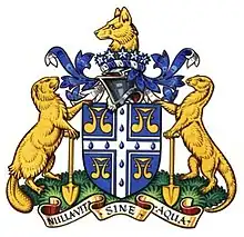 The supporters of the Company's coat of arms consist of a beaver and an otter. Each of them is holding a golden shovel to recognise the part played by the British chapter of the 5S (whose badge is a golden shovel) in the formation of the guild.