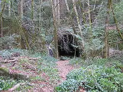 A post office was established at Wrights in 1879, and the railroad was completed in 1880 from Los Gatos, along the Los Gatos Creek, to Wrights Station, about a mile east of Patchen.[8] During the construction of the main railroad tunnel (between Wrights and Laurel), a strong flow of natural gas was encountered, and an explosion followed, which resulted in the death of thirty-two Chinese workers. The main leak was subsequently stopped, but gas continued to escape in small quantities. The extent of the supply was unknown.[9] U.S. Geological Survey maps from 1919 show the railroad running from Los Gatos to Santa Cruz, with stops in Alma, Wrights, Laurel, Glenwood, Clems, Zayante, Eccles, Felton, and Scotts Valley. There were a series of tunnels, including a 6,200-foot (1,900 m) tunnel between Wright and Laurel, most of which were later blocked when the railroad ceased operations. Wrights itself had a benchmark elevation of 896 feet (273 m).[10]