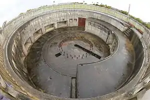 Wrights Hill Fortress is a counter bombardment coastal artillery battery in the Karori suburb of Wellington, New Zealand. It was built between 1942 and 1944 and is predominantly underground, with numerous tunnels linking the war shelters, gun emplacements, magazines, plotting rooms and engine room - which are, at some points, over 50 feet underground. The fort was intended to house three 9.2" Mk. XV guns, but only two guns were installed and the fort never saw action. After World War II was over, fort commanders fired both of the guns (Gun number one in 1946 and the second in 1947). The fall of the shot was observed in Cook Strait and these test firings (three rounds on each occasion) were deemed a success. In 1960, somewhat ironically, both of the guns were sold to the Japanese as scrap metal, the very nation Wrights Hill Fortress was constructed to defend Wellington against. The design of the fort is similar to the Stony Batter and Whangaparāoa 9.2" Mk. XV batteries, near Auckland.[1][2]