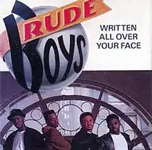 "Written All Over Your Face" is a song by American R&B group The Rude Boys, released as the second single from their debut album Rude Awakening. The song was written and produced by group member Larry Marcus with additional production from session musician and recording engineer Jim Salamone. The song became the group's signature song and spent one week at number one on the U.S. Billboard R&B chart. It also peaked at number sixteen on the U.S. Billboard Hot 100 in 1991.[1] "Written All Over Your Face" made the group a sensation, as the single topped the R&B charts and reached the national top 20. The single rode the charts for 31 weeks, and made it to #1 on the Billboard R&B charts and #16 on the Billboard Hot 100.