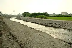 The river has long been polluted by untreated domestic and partially treated pig farming wastewater. It is among the most polluted rivers in Taiwan and the most polluted tributary of the Gaoping River. As one mitigation measure, a constructed wetland was established in 2004.[3]