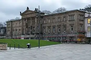 Wuppertal Hauptbahnhof (German for Wuppertal central station) is a railway station in the city of Wuppertal, just south of the Ruhr Area, in the German state of North Rhine-Westphalia. It is on the line between Düsseldorf/Cologne and Dortmund. The 1848 reception building is one of the oldest of its kind. The station was originally Elberfeld station and has been renamed several times since. Since 1992, it has been called Wuppertal Hauptbahnhof.[5] Wuppertal Hauptbahnhof is also the site of lost luggage operations for Deutsche Bahn.[6]