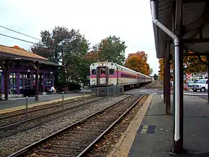 Wyoming Hill station is an MBTA Commuter Rail station on the Haverhill Line, located in Wyoming Square near downtown Melrose, Massachusetts. The station has two low-level side platforms and is not accessible. Wyoming Hill, in addition to the two other commuter rail stops in Melrose, was originally intended to be an extension of the Orange Line further north to Reading, Massachusetts.