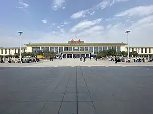 Xi'an railway station (Chinese: 西安站; pinyin: Xī'ān Zhàn) is one of the two main passenger railway stations of Xi'an, the capital of China's Shaanxi Province. Located on the Longhai Railway and just to the north of Xi'an's historical walled city, the station had long been the main train station for the Xi'an metropolitan area. With the opening of Xi'an North railway station on the northern outskirts of the city in 2011, most of the high-speed services, including the G- and D-series trains of the Zhengzhou–Xi'an high-speed railway, have been transferred to the new station.[3] Xi'an railway station remains the main station for all conventional rail service in the city, including the overnight Z-series expresses, T-series express trains, and all slower services.[4]