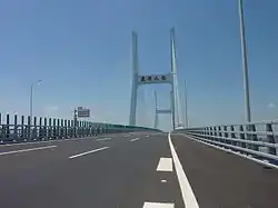 The bridge carries traffic between the Haicang District in Xiamen to the north of the bay and Longhai, Zhangzhou to the south.[4] It has six lanes of traffic and a speed limit of 100 kilometres per hour (62 mph). The bridge has reduced the travel time across the bay from 2 hours down to 30 minutes.[5]