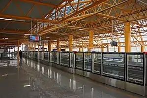 Xianlinhu station (Chinese: 仙林湖站), is a station on Line 4 of the Nanjing Metro and planned interchange station with the future Line S5.[1] It is the eastern terminus of Line 4, which opened on January 18, 2017 alongside seventeen other stations. Located on the eastern edge of Nanjing's suburban Qixia District, it the only elevated station among the Phase I stations, and is located at the intersection of Weidi Road and Guangzhi Road.[2]