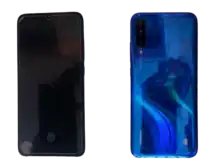 Front and back view of Mi A3 "Not just Blue" color scheme