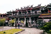 The Xizhi Gongbei Temple (Chinese: 汐止拱北殿; pinyin: Xīzhǐ gǒngběi diàn) is a traditional Taoist temple located on Sanxiu Mountain in Xizhi District, New Taipei, Taiwan. Zhenren Lü Dongbin, known locally as Hianggong (Chinese: 仙公), is the principal Deity worshiped at Xizhi Gongbei Temple. Every year, from late November to late December, the temple is also a popular tourist spot for maple viewing.[1] There are various hiking trails around the Xizhi Gongbei Temple.[2] The cityscape of downtown Xizhi and the mountains in the distance can be viewed after following the stone steps up to the Chuanliu Pavilion.[3]