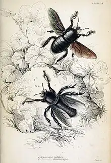 Xylocopa tenuiscapa (male, top) as depicted in Jardine's The Naturalist's Library