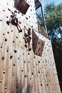 Camp Fitch's facilities include a 4-story climbing tower with zip line, an indoor climbing center, rifle range, archery range, swimming pool, mountain bike trails, horseback riding, air-rifle range, an indoor nature activity center, an inland Lake (Lake MVIMA) and access to Lake Erie.[13][14] Activity areas include: Horseback Riding, Air-Rifles, Rock Climbing, Swimming, Sailing, Crafts, Canoeing, Boating, Water-skiing, Archery, Riflery (22 mm), Rocketry, Horsemanship Lessons, Campfires, Swim Lessons, SUP and daily age-group specific programs.[15]