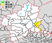 - March 27, 2006, Yamada District was dissolved as the town of Ōmama was merged with the town of Kasakake (from Nitta District), and the village of Azuma (from Seta District) to create the city of Midori.