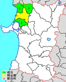 yellow - former extent in early Meiji period