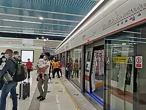 Yantian Road station (Chinese: 盐田路站; pinyin: Yántián Lù Zhàn) is the terminal station on Line 8 of the Shenzhen Metro. It opened on 28 October 2020.[1][2] It was the eastern terminus of the line before the Phase 2 extension to Xiaomeisha opened on 27 December 2023.
