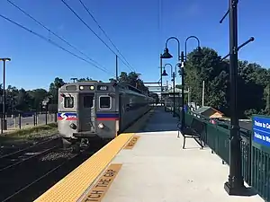 A SEPTA Regional Rail train on the West Trenton Line stops at the Yardley station
