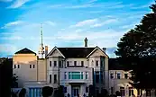 The Lennox Gardens, Yarralumla Yacht Club, Albert Hall and the Hotel Canberra are located in the eastern end of the suburb. Located on Commonwealth Avenue,[3] the Hotel Canberra opened in 1924 to accommodate politicians when Parliament was in session; Prime Minister James Scullin stayed there to avoid the running costs of the official residence, The Lodge during the Great Depression. It has been heritage listed as an example of the distinctive Garden-Pavilion style of architect John Smith Murdoch in line with the garden city design of Burley Griffin.[63] The hotel was closed in 1974 and the buildings served as an annexe for Parliament House between 1976 and 1984. The Hyatt Hotel Group re-opened the hotel in 1987.[64] Adjacent to the Canberra Hotel is the Canberra Croquet Club. The only croquet club in Canberra, it was opened in 1928 and was restricted to females until 1975. As with the hotel, the clubhouse was built in federation-style architecture and has been heritage-listed along with the croquet lawns.[65] Immediately to the north of Canberra Hotel on Commonwealth Avenue is Albert Hall, built in 1927, which was in the early years of Canberra, one of the main centres of social, musical, theatrical, ceremonial and artistic activity in the capital. It was opened by Prime Minister Stanley Bruce and the subject of royal visits. Although its functionality has been superseded by more specialised entertainment and cultural institutions built in modern times, it is still frequently used for community events. It has been heritage listed for its social and historical value, and as an example of early Canberra architecture.[66][67]