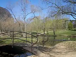 Weston Park is situated on a peninsula near the western end of Lake Burley Griffin.[2] The park includes swimming areas, children's play equipment and wading pools, and a miniature railway, and is a popular barbecue spot on weekends.[2][41] Weston Park forms part of a string of parks that line the southern shore of Lake Burley Griffin; other parks include Yarralumla Bay, Lennox Gardens (incorporating a Japanese garden named Canberra Nara Park) and Stirling Park.[2][3] With its waterfront location on Lake Burley Griffin, Yarralumla Bay is the base of the Canberra Rowing Club, ANU Sailing Club, the Australian Institute of Sport Rowing Centre and the YMCA Sailing Club, while the Southern Cross Yacht Club is based at Lotus Bay opposite Lennox Gardens.[42][43] Yarralumla Neighbourhood Oval is adjacent to the suburb's primary school as well as a community hall and some tennis courts.[42]