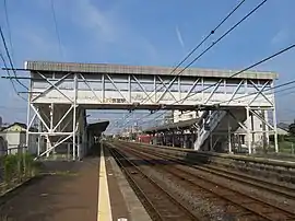 Yatomi Station (弥富駅, Yatomi-eki) is a junction railway station in the city of Yatomi, Aichi Prefecture, Japan, operated by Central Japan Railway Company (JR Tōkai) and the private railway company, Nagoya Railway (Meitetsu). The station's elevation is 0.93 m below sea level, the lowest among all above-ground stations of JR Group.[2]