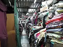 The Yen Chow Street Hawker Bazaar, also known as Pang Jai (棚仔), is a covered market located at the intersection of Yen Chow Street and Lai Chi Kok Road in Sham Shui Po, Hong Kong. The market is known for selling fabrics, textiles, and other fashion-related paraphernalia. The market has been popular with craft enthusiasts, design students, and professionals in the fashion industry for decades.[1][2]