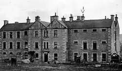 This complex of buildings within a walled compound was completed in 1842 and was used as a prison for criminals until it was converted into a military barracks.[1] Burials of prisoners who were executed or died while incarcerated took place within the prison compound and human remains have been found adjacent to the north east boundary wall. The complex was converted into a drill hall for the 1st Fifeshire Light Horse Volunteer Corps in 1890.[1] This unit amalgamated with the 1st Forfarshire Light Horse to become the Fife and Forfar Yeomanry in 1901 with 'A Squadron', the Fife and Forfar Yeomanry based at Yeomanry House in Cupar.[2] 'A Squadron' was mobilised at the drill hall in August 1914 before being deployed to Gallipoli and ultimately to the Western Front.[3]