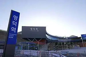 Yeongdeok station (Korean: 영덕역; Hanja: 盈德驛) is a railway station of the Donghae Line in Yeongdeok County, North Gyeongsang, South Korea.