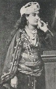 Yeranuhi Karakashian was born in 1848 in Üsküdar, a district of Constantinople (Istanbul) that is situated on the Asiatic side of the Bosphorus. She was the older sister of actress and soprano Verkine Karakashian (1856 - 1933). She attended the local elementary school. Her first theatrical performance was in 1864 at the Oriental Theater (Şark Tiyatrosu) starring in the Drtad the Great play. She then was accepted into Gullu Agop's theatrical group. Soon thereafter, she became the leading actress for almost all woman roles.[2]
